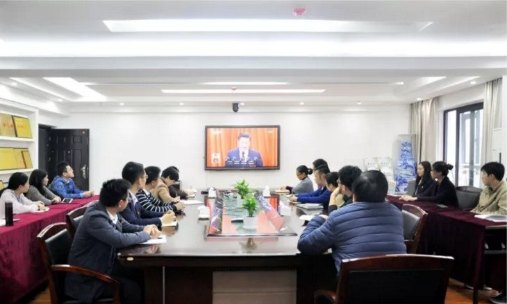 2017年10月18日上午9时整,随着雄壮的国歌奏响,永业行总部会议室一片庄严,这一刻,公司员工们的心情与北京人民大会堂就坐的代表们同样激动。永业行党委副书记、副总裁靳剑辉,副总裁王琴及各部门党员及群众代表在总部会议室集中收看十九大开幕式,大家聚精会神地聆听习近平总书记的报告,并不时记录。永业行党委副书记、总裁潘世炳在武汉市委统战部收看直播盛况。