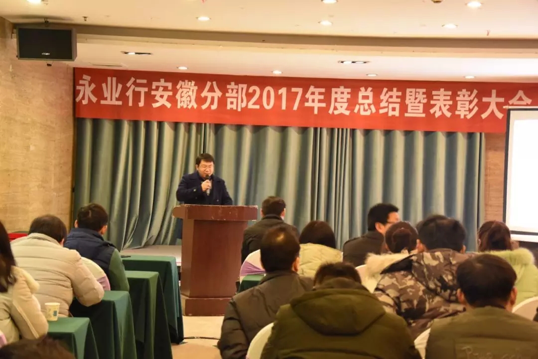 2018年1月30日上午,永业行安徽分部在蜀山国际大酒店召开2017年度总结表彰大会暨迎新春联欢会。分部全体员工欢聚一堂,总结过去,表彰先进,展望未来。