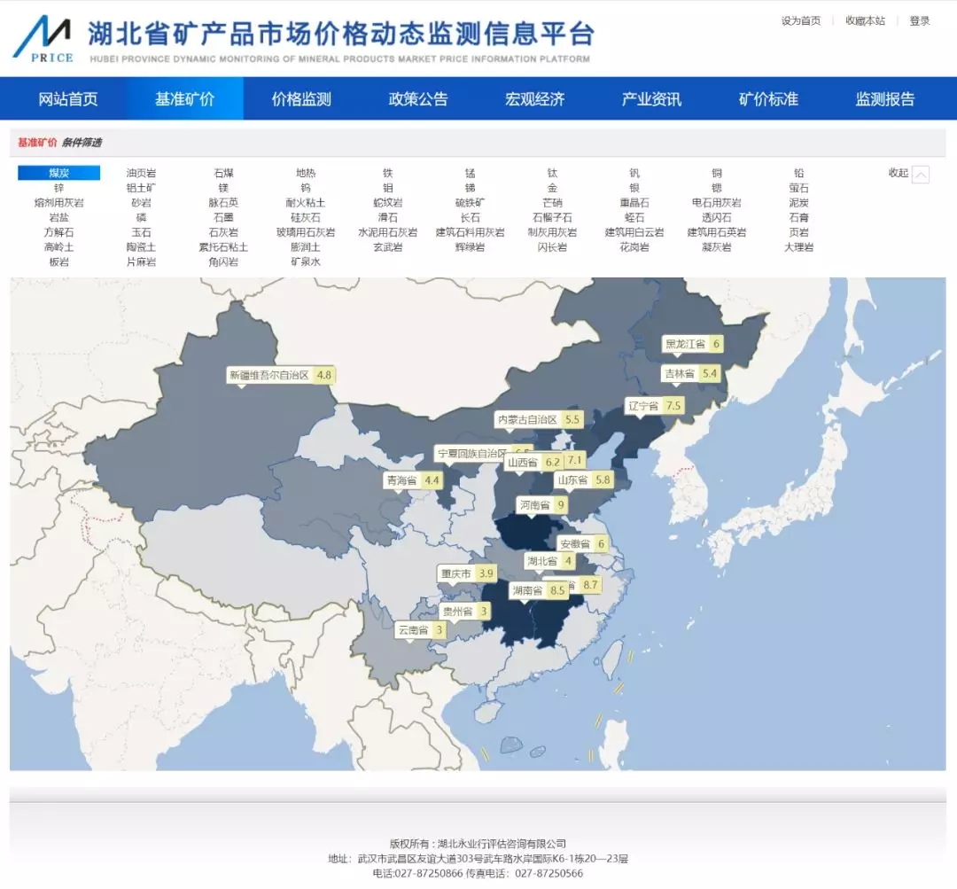 湖北省矿产品市场价格动态监测信息服务平台