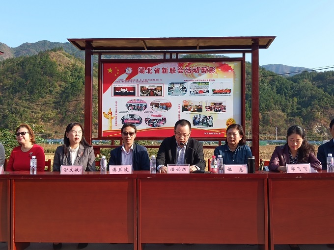 捐赠仪式由英山县委统战部常务副部长郑飞飞主持。英山县政协副主席伍惠代表英山县致欢迎辞,全国政协委员谢文敏代表省新联会和古城村支部书记完成捐赠交接。省新联会副会长潘世炳代表省新联会致辞。省委统战部新阶层处副处长傅兰波、张永富,省新联会各位副会长及捐赠代表,英山县政协、统战部、石头咀镇等领导为古城村异地扶贫搬迁点揭牌。