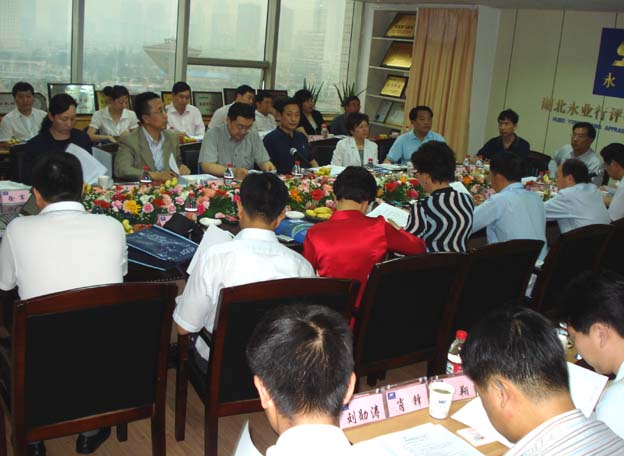 董事长方国成代表永业行向考察团的到来表示热烈欢迎,总裁潘世炳介绍了公司发展概况、应对金融危机的措施及未来发展规划,并提出了中介机构发展的有关建议。考察团成员就评估行业的管理、风险控制、市场竞争、税收、金融等相关政策进行了讨论和交流。座谈会上,沈冲局长总结指出,要从战略层面认识中介服务业的地位问题,要在实践中不断完善适合智力服务行业的管理和服务模式,加强精英人才储备,推动行业健康有序发展。希望永业行继续做强做大,实现“百年老店”这一长远目标,进而发展成为一项永久的事业。