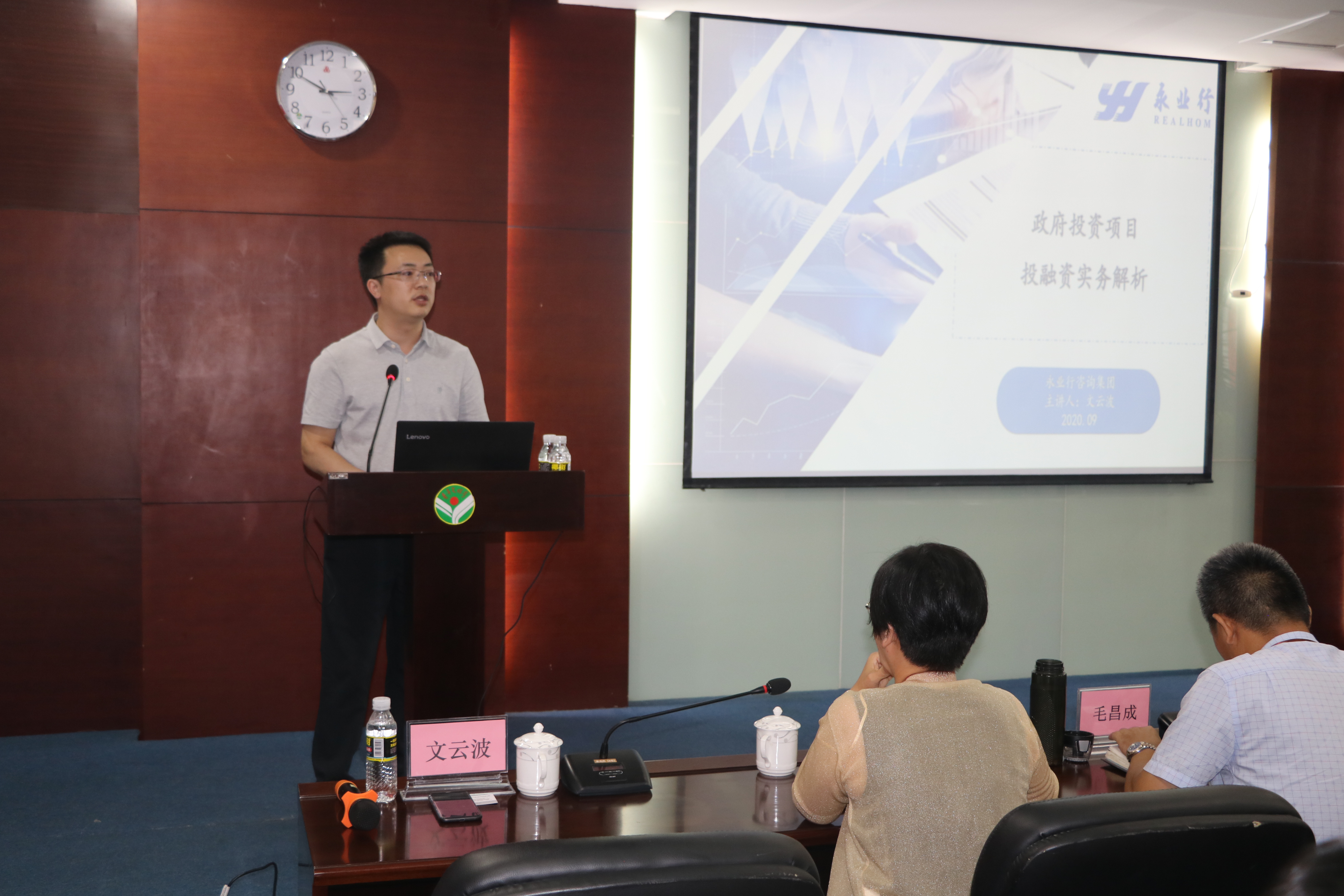 2020年9月7日,海口市城建集团有限公司组织开展第44期“城建知行大讲堂”,永业行咨询业务总监文云波受邀作为主讲人作了政府投资项目投融资实务解析主题讲座。海口城建集团领导班子、直管干部及集团系统投融资人员、财务人员等共计70余人参加了讲座。