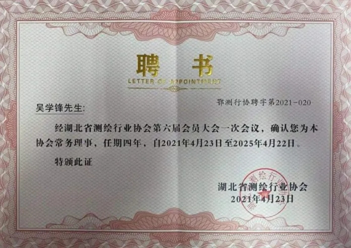 会议审议通过了《第五届理事会工作报告》《第五届理事会财务情况报告》《湖北省测绘行业协会章程》(修正案)《湖北省测绘行业协会第六届会费标准》,选举产生了第六届会长、副会长、常务理事、理事、监事、秘书长。永业行集团成员武汉永业赛博能规划勘测有限责任公司当选为常务理事单位,副总裁吴学锋当选为常务理事。