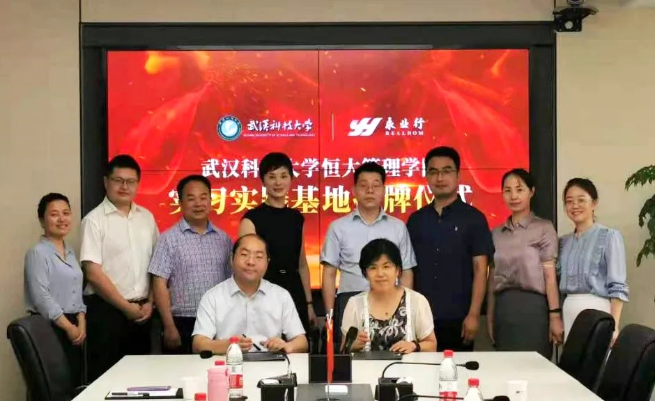 副总裁吴学锋与武汉科技大学恒大管理学院副院长邱玉莲现场签订《实习实践教学基地协议书》,并举行授牌仪式。武汉科技大学恒大管理学院院长助理熊华平、工程管理系书记刘孟凯、工程管理系教授孙淑生,永业行人力资源总经理周云,投资咨询事业群运营中心总经理王瑰、营销中心副总经理胡晶等参加了授牌仪式。