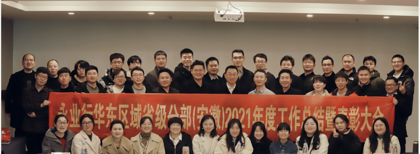 2022年1月8日上午,永业行华东区域省级分部(安徽)召开了2021年度总结暨表彰大会,分部全体人员参加了会议。