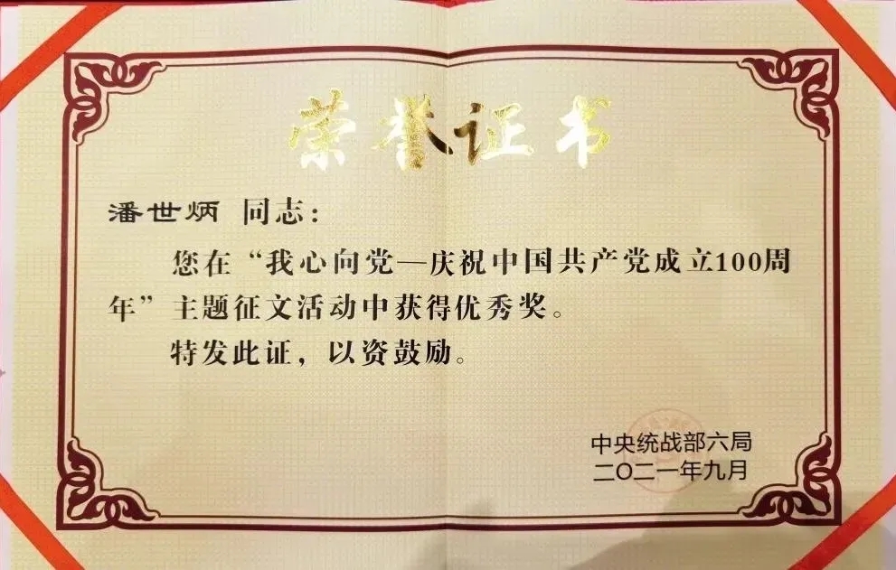 1月21日上午,湖北省政协十二届五次会议举行全体会议。省政协从全省20000余名各级政协委员中,评选出100名省优秀政协委员,其中10名优秀政协委员代表在大会现场予以表彰。省政协党组书记孙伟为获表彰委员颁奖。省政协委员、永业行董事长作为省优秀政协委员代表上台领奖。此为潘世炳连续三届(第十、十一、十二届)获评“湖北省优秀政协委员”荣誉称号。