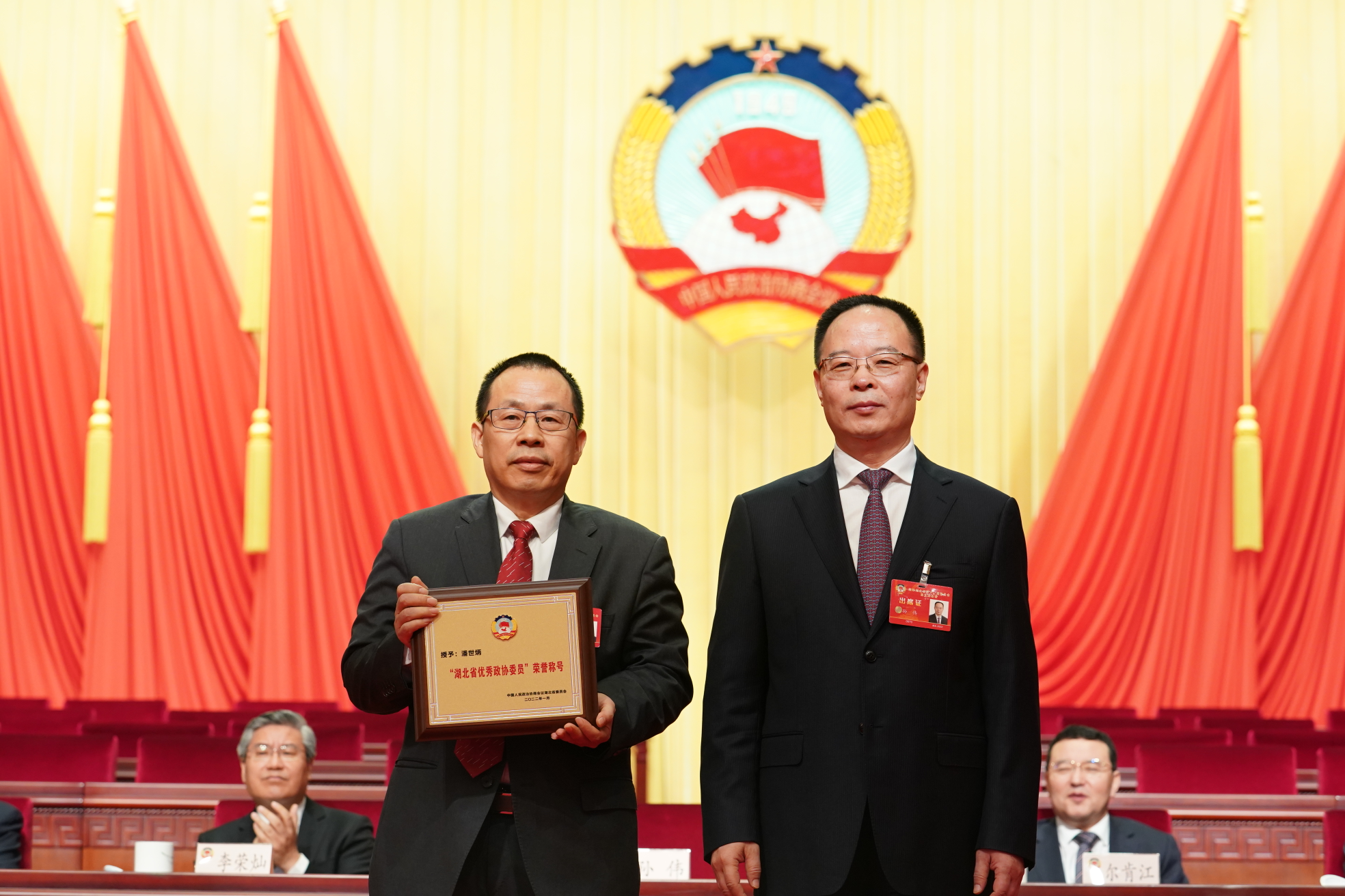 1月21号上午举行的优秀政协委员颁奖仪式上,潘世炳作为政协湖北省第十二届100名优秀政协委员中遴选出的10名代表,上台接受省政协党组书记(省政协主席)孙伟的颁奖。此为潘世炳连续三届(第十、十一、十二届)获评“湖北省优秀政协委员”荣誉称号。