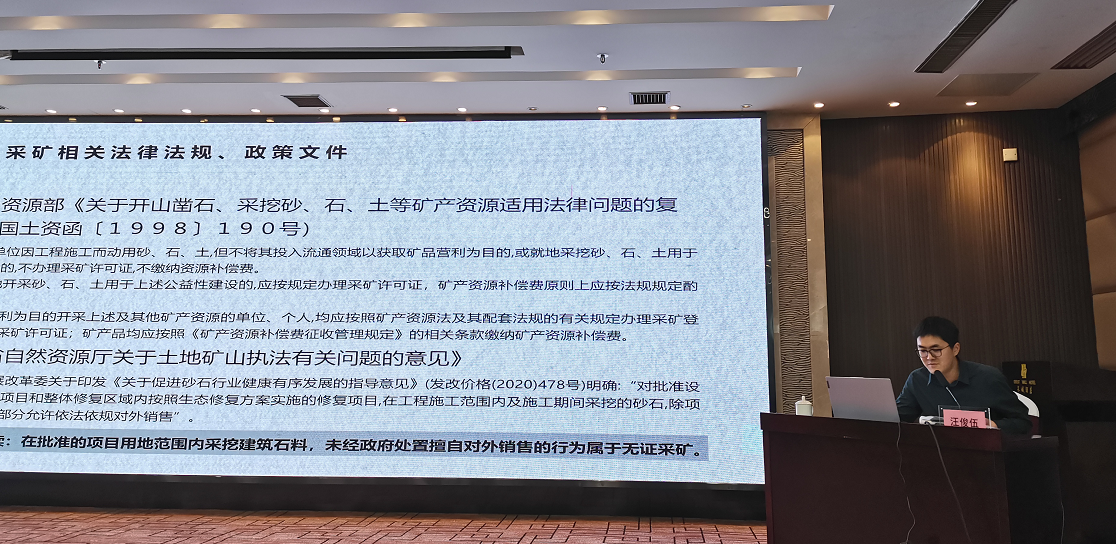 会议开始,宜昌市自然资源和规划局执法监督科负责人汪俊伍开展以“严格依法依规用地用矿、服务交通项目高质量发展”为主题的分享交流,从相关法律法规、政策文件解读,湖北省交通项目违法情况解析,相关案例学习等方面对交通项目用地政策进行深入解读和分享。