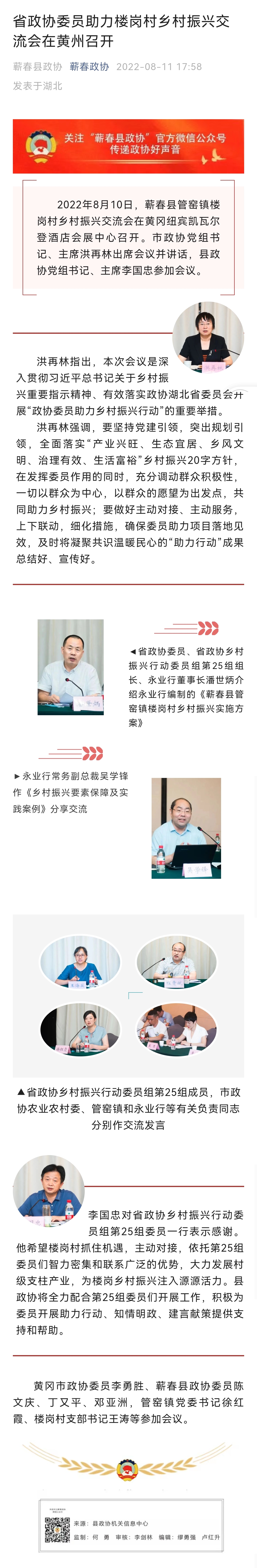 蕲春县政协公众号:省政协委员助力楼岗村乡村振兴交流会在黄州召开
