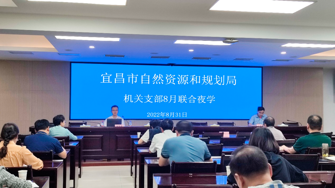 2022年8月31日,宜昌市自然资源和规划局举办“机关支部8月联合夜学”活动,永业行鄂西区副总经理赵智伟受邀作专题培训交流。宜昌市自然资源和规划局机关第三党支部书记杨君同志主持培训。局领导刘文、唐作友、王恩凤、王建民,局机关第一、第二、第三、第四党支部全体党员及涵盖的科室所有人员、青年干部研习班全体人员近70人参加了培训交流。