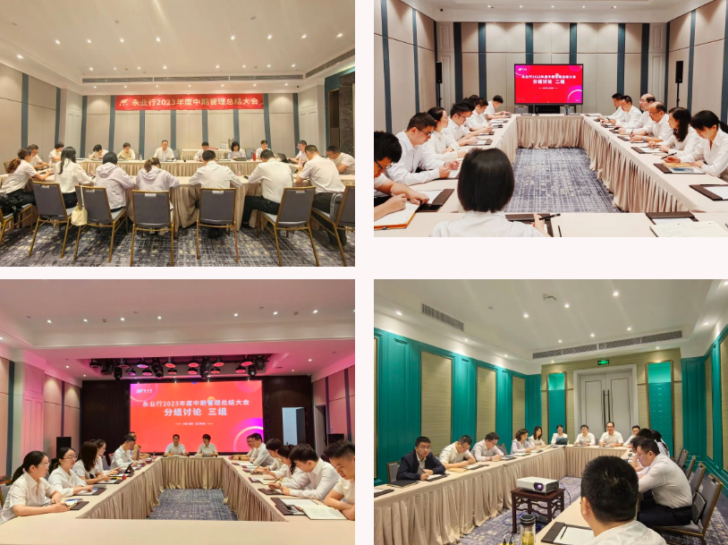 2023年6月20—24日,永业行2023年度中期管理总结大会在青海省西宁市召开,全面总结上半年工作,研判当前宏观经济形势,深入分析工作中的问题与不足,扎实部署下半年重点工作。永业行党委书记、董事长潘世炳出席会议并讲话。常务副总裁吴学锋作半年度工作报告。联席总裁王琴,高级副总裁文云波,副总裁雷小军、金建华、雷小明,助理总裁徐宇初及各部门负责人、班子成员代表、年度标兵等70余人参加会议。