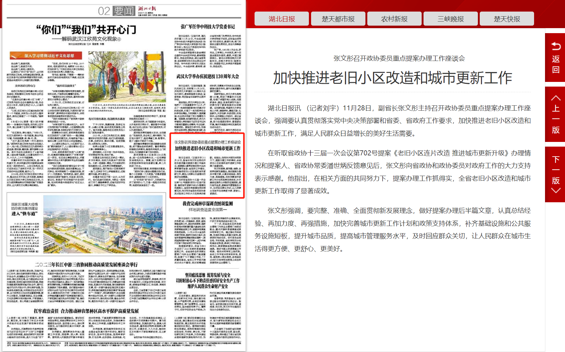 湖北日报:张文彤召开政协委员重点提案办理工作座谈会  加快推进老旧小区改造和城市更新工作