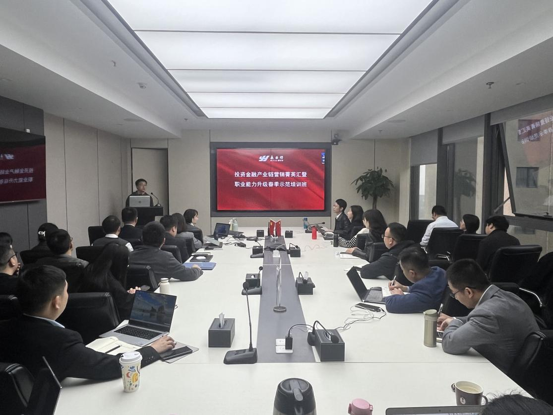 为提振人员士气,提升全体市场人员专业能力,培养具有创新思维和团队协作能力的综合人才,推动永业行服务升级,投资金融产业链于2024年3月17日举办“营销菁英汇暨职业能力升级春季示范培训班”开班仪式并开展第一期专题培训,永业行高级副总裁文云波做开班致辞,投资金融产业链副总经理杨凤、赵辉,业务中心总经理王利平及全体市场人员近50人参加会议。