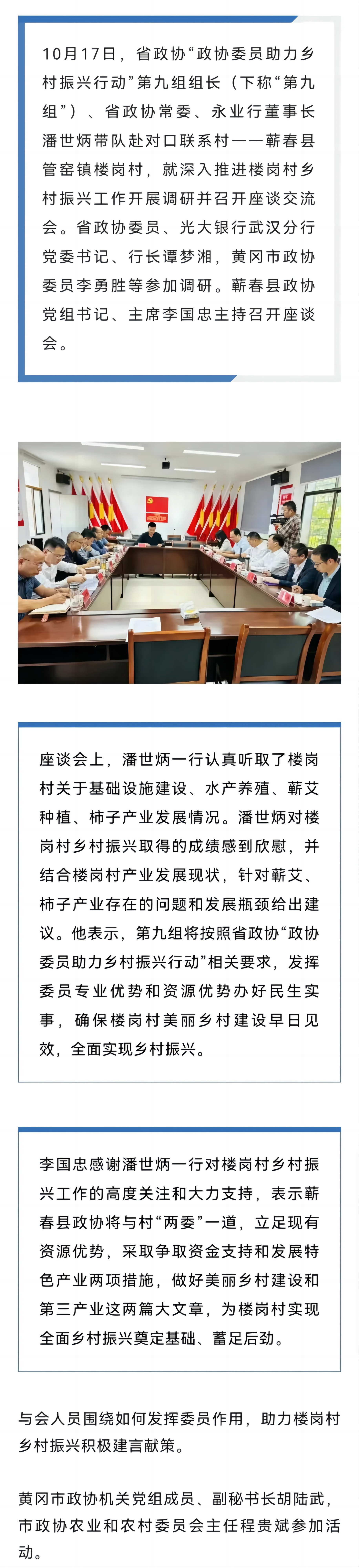 黄冈政协:省政协常委潘世炳带队赴蕲春开展“政协委员助力乡村振兴行动”