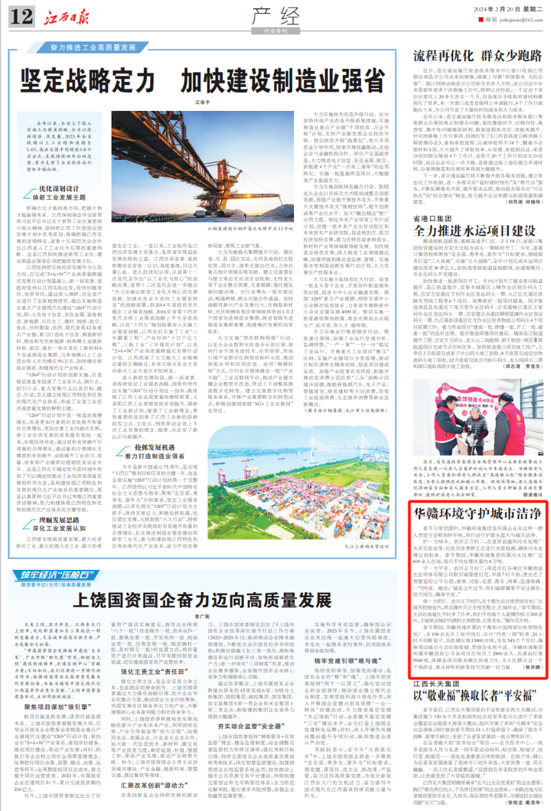 江西省投资集团:江西日报:华赣环境守护城市洁净
