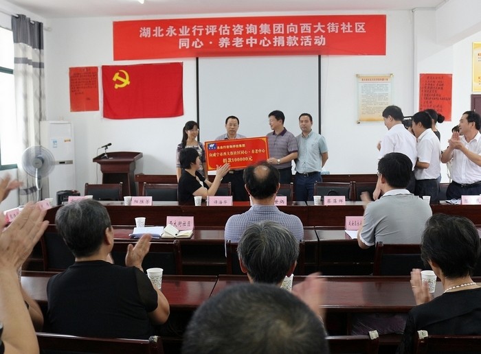 8月26日,永业行向咸宁市西大街社区同心·养老中心捐款活动在咸宁市西大街社区举行。湖北省委统战部副部长蔡藻鲜,省委统战部知工处处长阳胜芳,咸宁市委常委、统战部长张方胜,咸宁市委统战部常务副部长陈冬民,咸安区区委书记谭海华,区委副书记、区纪委书记许关欣等出席活动。