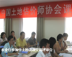 永业行承担的两个课题《估价机构法人治理结构和风险防范》和《缺陷土地价格评估技术研究》参与了本次评审。听取课题负责人潘世炳、成员刘彦辉的课题汇报后,专家组一致认为《估价机构法人治理结构和风险防范》课题成果对目前估价机构的内部管理研究具有很大的应用价值,可以纳入估价师继续教育的课程中;《缺陷土地价格评估技术研究》为完善土地估价技术进行了有益的探讨,具有一定的前瞻性。与会专家一致同意两个课题研究报告通过评审,同时也提出了一些宝贵的意见和建议。会上,中国土地估价师协会秘书长秦海荣还对永业行积极参与课题研究给予了充分肯定。永业行课题组将根据各位专家提出的意见和建议,对课题研究报告进行完善。