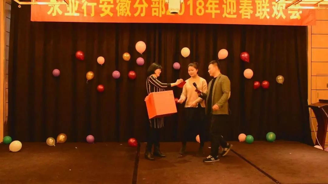 下午3点半,永业行安徽分部2018年迎新春联欢会正式开始。各部门的小伙伴们带来了形式各异、让人目不暇接的表演,有歌舞表演、笛子独奏、小品、相声等节目,五彩缤纷,精彩纷呈。一轮又一轮的游戏和抽奖环节不断掀起年会的高潮,公司领导与员工亲情互动、抽奖活动、游戏活动,让歌声、掌声、欢呼声一直在会场上荡漾。