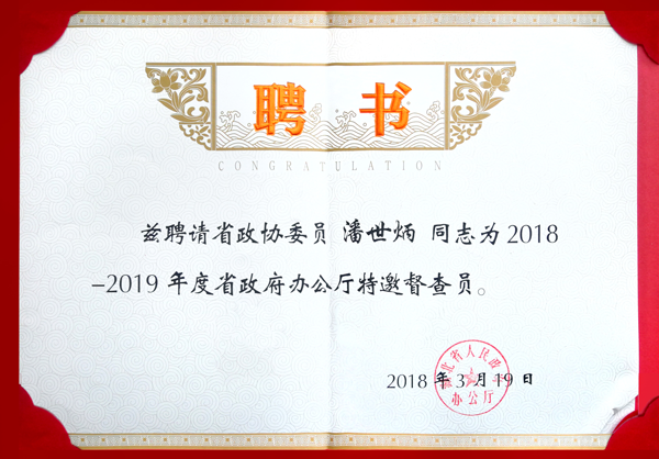 2018年3月26日上午,湖北省政府一季度综合督查动员培训会在省政府常务会议室举行。永业行总裁潘世炳等20名省人大代表、政协委员被聘为2018-2019年度省政府办公厅特邀督查员。