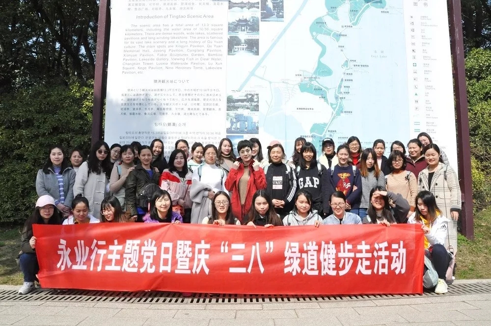 为庆祝“三八”国际劳动妇女节,丰富我公司女员工文体生活,促进女员工身心健康,营造团结和谐、文明向上的浓厚氛围,永业行3月7日下午组织总部女员工开展“三八”东湖绿道健步走活动。此次活动起点站设置在梨园广场,沿着东湖绿道直至磨山,全程6.5公里。