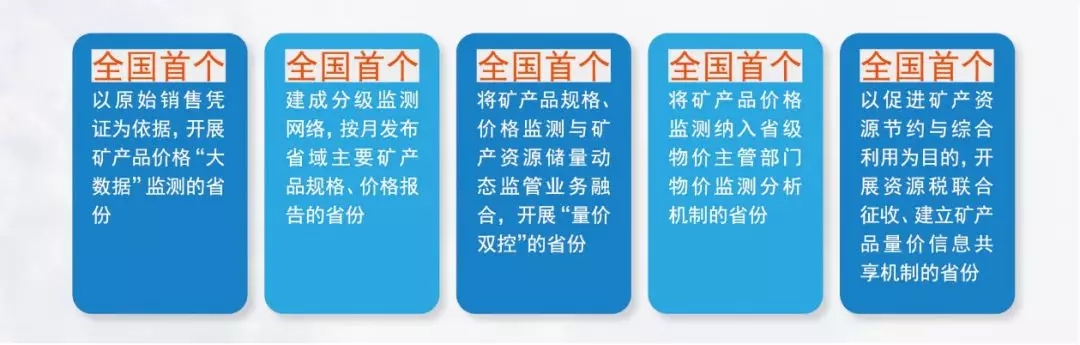 以永业行为技术支撑单位的湖北省矿产品价格监测工作,源起于2013年湖北省矿产资源补偿费网上征收管理改革,服务于矿产资源补偿费阳光征管和矿业权评估报告质量监管的需求。随着新常态下的矿政管理改革的不断深入,以及大数据技术的兴起,现已逐步发展为兼具各省特色的“互联网+”管理创新形式,实现了5个首个的全国定位。