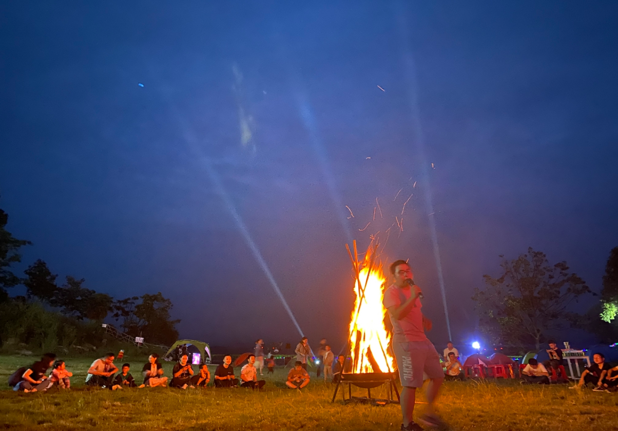 攀岩后,由队长带领组员动手制作食物,享受美食。当天的篝火晚会上,设置了“抢凳子”、“一圈到底”等游戏环节,同时也为一、二季度寿星准备了惊喜蛋糕,送上生日祝福。