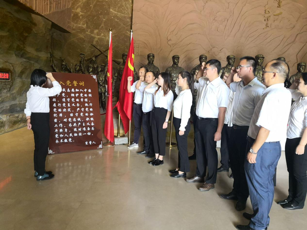 在庄重肃穆的中原突围纪念馆内,孝感分部党支部书记潘娟带领大家庄严地举起右拳,重温了入党誓词。大家透过纪念馆内珍贵的史料和生动的影像,了解到以大悟县宣化店为起点的“生存第一、胜利第一”中原突围,拉开了全国解放战争的序幕,是中国革命战争史上的一个重要转折,迈开了走向胜利的坚定步伐。展馆墙上,各种展板、雕塑、油画及文史资料等,无一不默默的诉说着革命的丰功伟绩,诠释了中原突围“不怕艰难困苦的跋涉、英武不屈的拼搏精神”。在参观过程中,大家在阅览了革命先烈可歌可泣的英雄事迹后,向英烈表达了自己最崇高的敬意和最深切的缅怀。