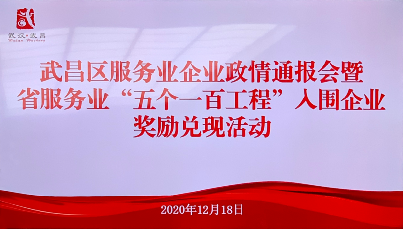 2020年12月18日,武昌区举办服务业企业政情通报会暨省服务业“五个一百工程”入围企业奖励兑现活动,武昌区委常委、常委副区长陈鹏出席会议并讲话。永业行作为2020年全省服务业“五个一百工程”重点品牌、重点企业应邀参会,副总裁雷小军作为获奖企业代表发言。