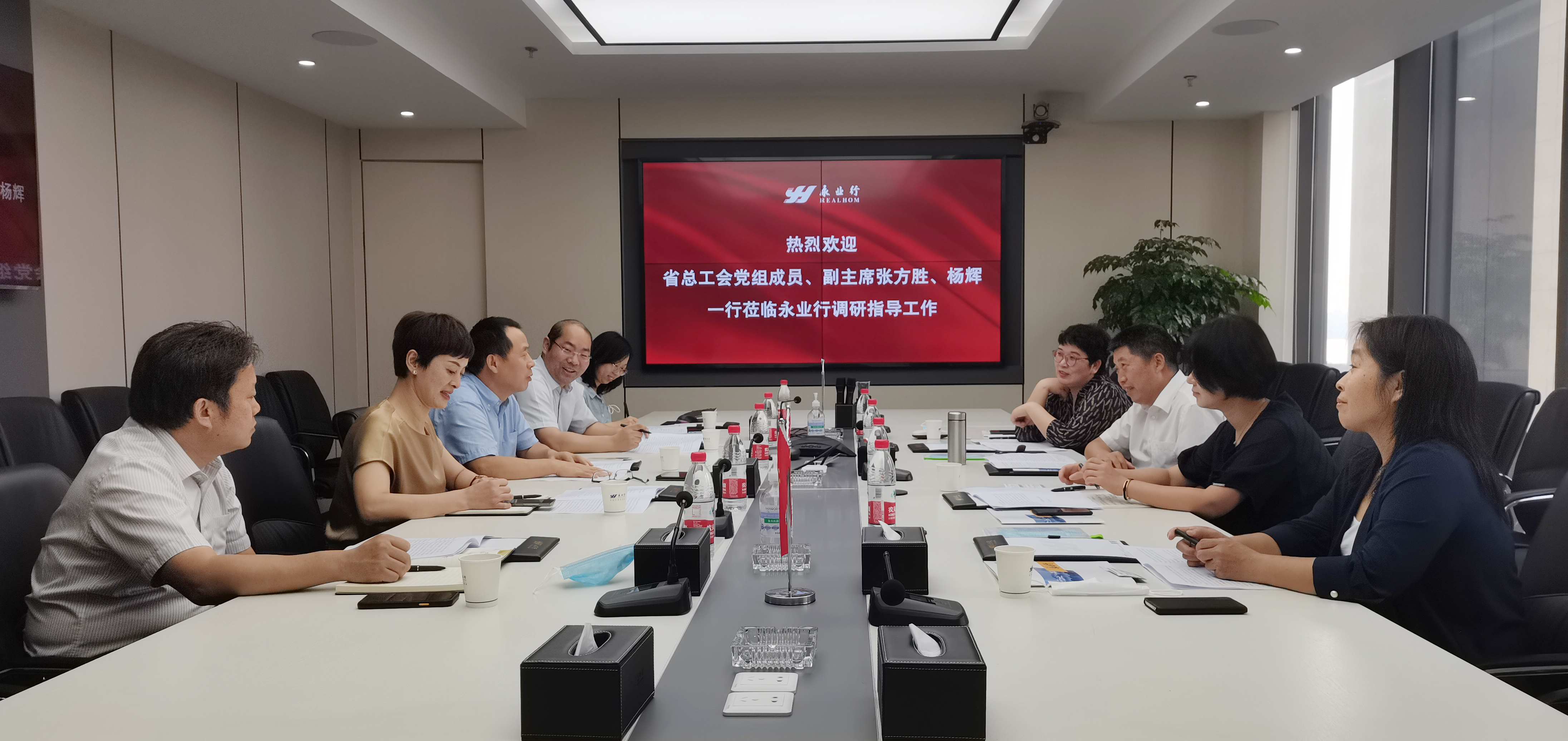 潘世炳首先对调研组一行莅临永业行表示热烈欢迎,感谢省总工会对永业行的关心和关注,并就集团发展历程、创新研发、业务拓展、党建引领、永业行、社会责任等方面取得的成绩进行了介绍,重点围绕员工队伍建设、薪酬发放体系、劳动技能竞赛、关心关爱活动等进行了汇报。王琴详细介绍了集团工会组织架构,从业人员、建会入会、员工权益保障、女员工关爱等情况。