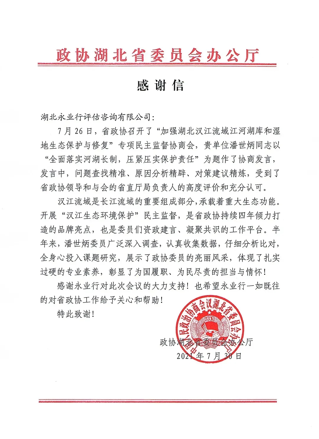 1月21日上午,湖北省政协十二届五次会议举行全体会议。省政协从全省20000余名各级政协委员中,评选出100名省优秀政协委员,其中10名优秀政协委员代表在大会现场予以表彰。省政协党组书记孙伟为获表彰委员颁奖。省政协委员、永业行董事长作为省优秀政协委员代表上台领奖。此为潘世炳连续三届(第十、十一、十二届)获评“湖北省优秀政协委员”荣誉称号。