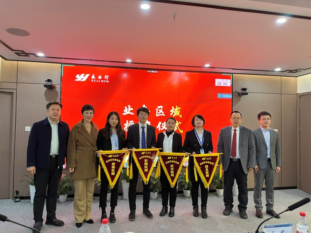 会上,公司领导分别对事业群2022年四大业务区域进行了授旗,激励各区域负责人敢于担当、勇攀高峰、开拓进取。