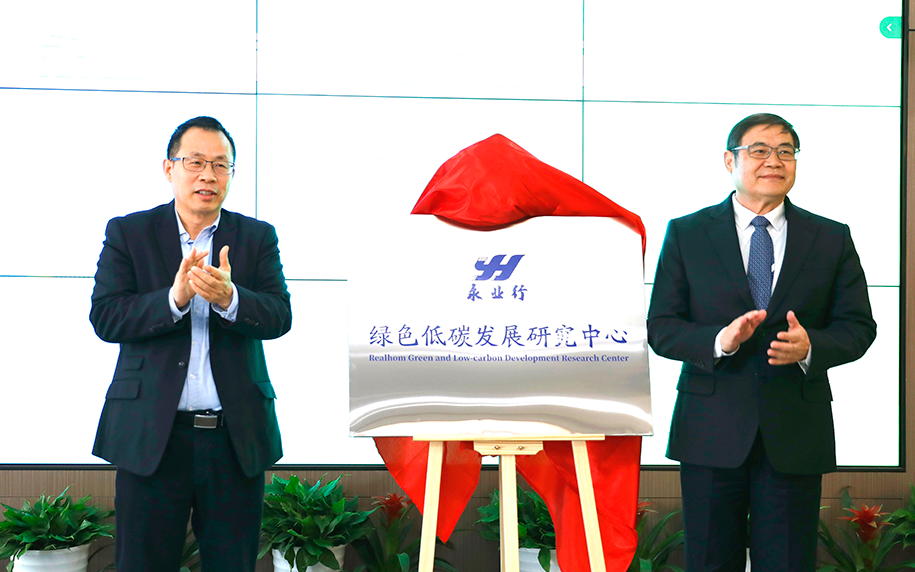 在与会人员的见证下,潘家华与潘世炳共同为永业行绿色低碳发展研究中心揭牌。