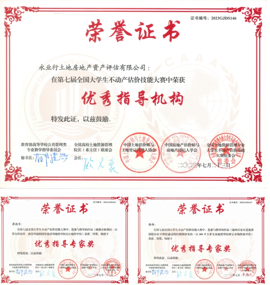 永业行获评为第七届全国大学生不动产估价技能大赛优秀指导机构