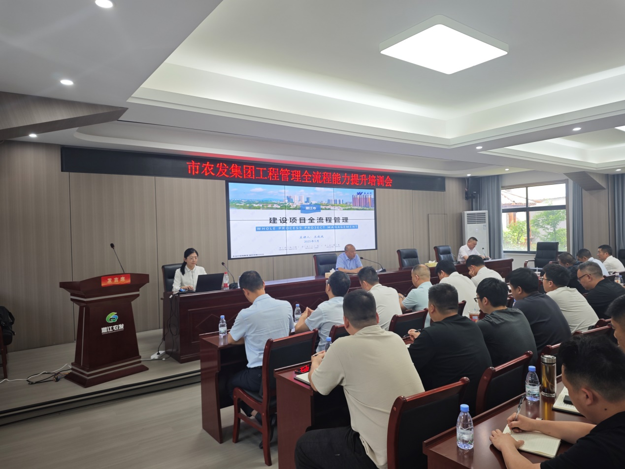 2025年5月12日,潜江市农业发展集团有限公司组织召开“市农发集团工程管理全流程能力提升培训会”,市农发集团副总经理涂涛主持会议。永业行投资金融事业群工程咨询事业部总监王成成受邀作《建设项目全流程管理》专题培训。