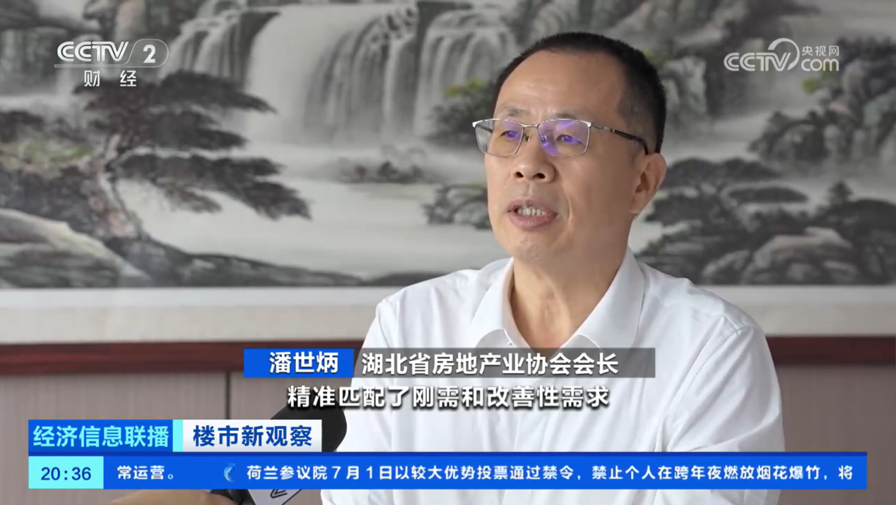 2025年7月3日,中央电视台《经济信息联播》播出“湖北武汉:楼市新政有效拉动市场 6月份新房成交超1.2万套”报道,湖北省房地产业协会会长、永业行董事长潘世炳接受央视记者采访。